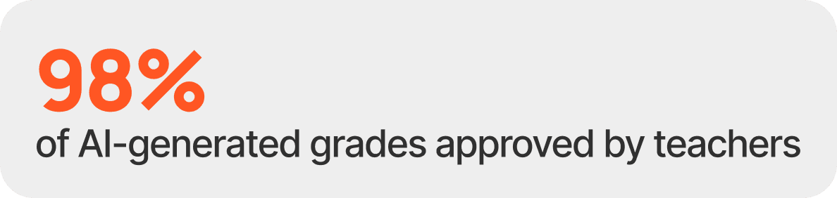 VedaAI uses school-defined rubrics and contextual evaluation. In pilots, 98% of AI-generated grades were accepted by teachers, ensuring high accuracy with human oversight.
